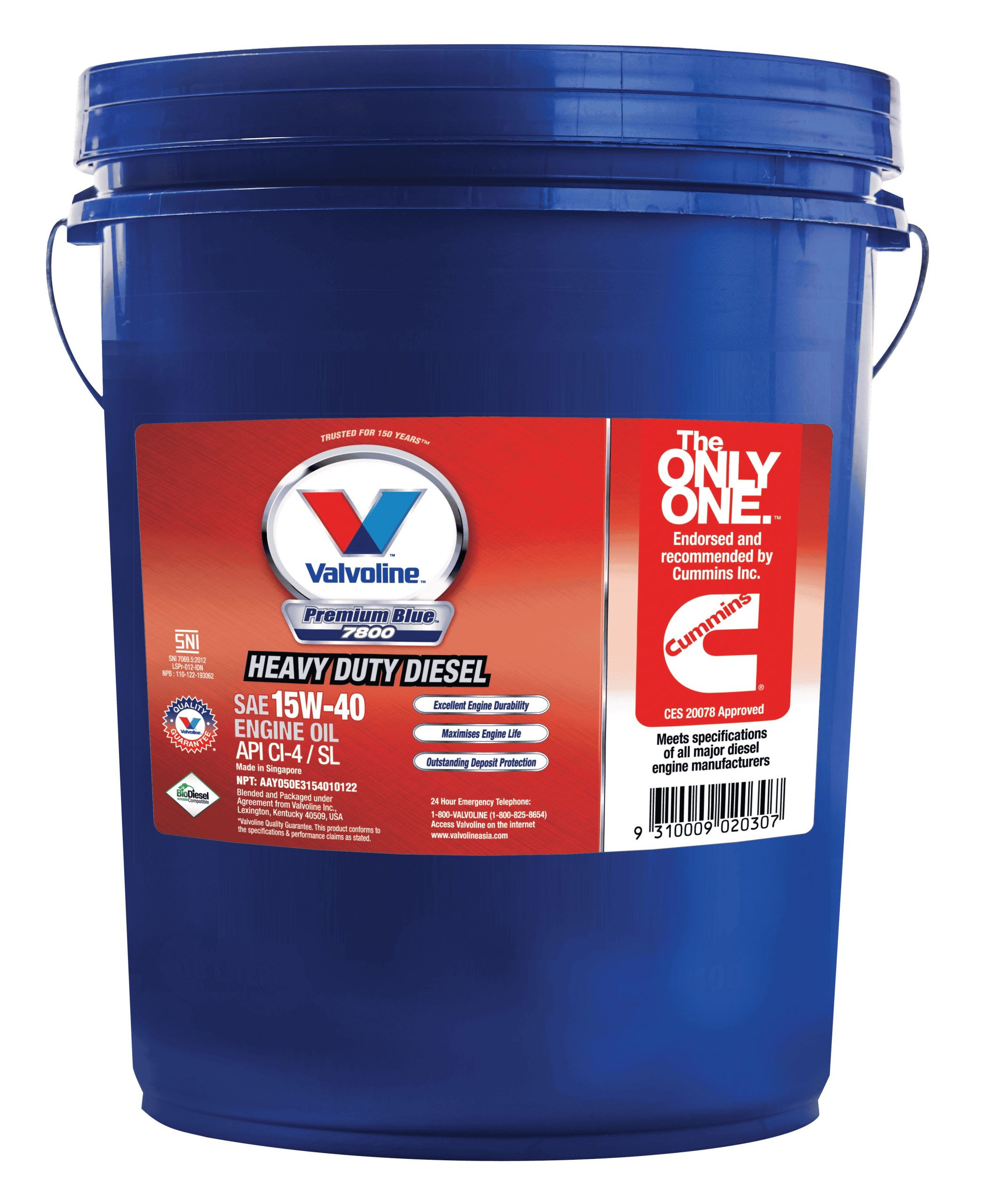 Valvoline Premium Blue 7800 là dầu động cơ duy nhất được Cummins Engine Company Inc. chứng nhận và khuyến nghị sử dụng, khẳng định đẳng cấp và độ tin cậy hàng đầu cho các dòng động cơ Diesel hạng nặng.